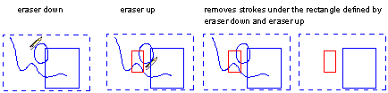 Note that the eraser removes all strokes within the area defined by the corners of an eraser-down event and eraser-up event on the whiteboard surface: